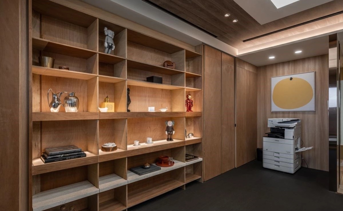 走進(jìn)老板的私人辦公室,整體風(fēng)格維持一貫的簡約與舒適感,并將原本的頂上大梁,利用圓弧線條抹去銳利度,接著鋪排俐落的光帶,點(diǎn)亮空間里的時尚神采。而桌面下的柜體,則特別向家俱工廠訂制,靈感來自于西班牙鬼才設(shè)計師Jaime Hayón,讓每一只平凡柜腳擁有獨(dú)一無二的造型,除了展現(xiàn)個性化十足的外觀,也彰顯老板對設(shè)計領(lǐng)域的獨(dú)到眼光。